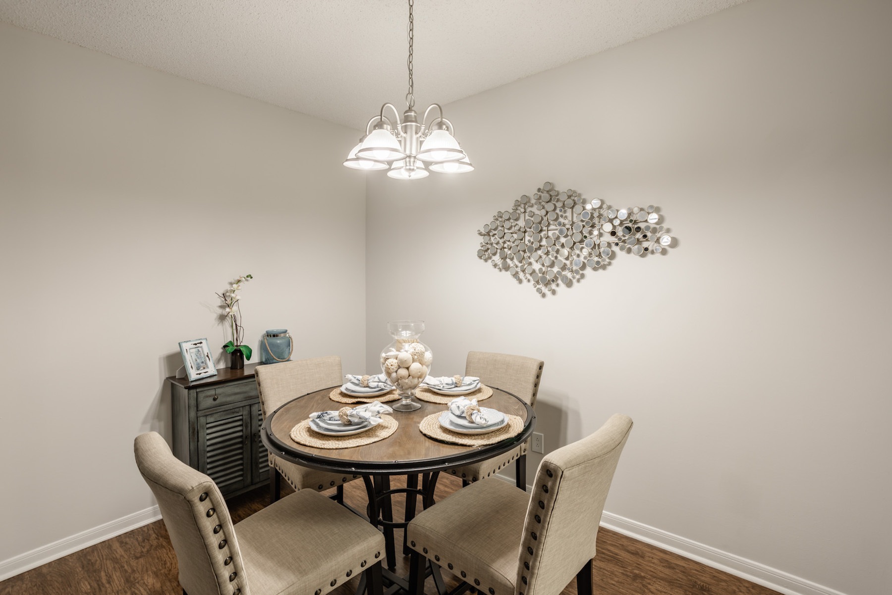 • Large dining area with wood floors and access to the living room and kitchen