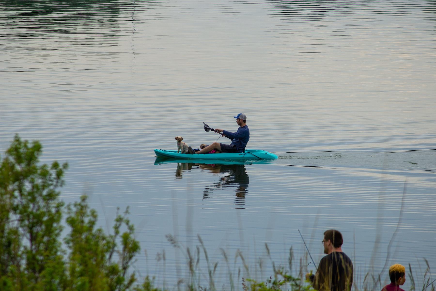 • Man kayaking on the lake